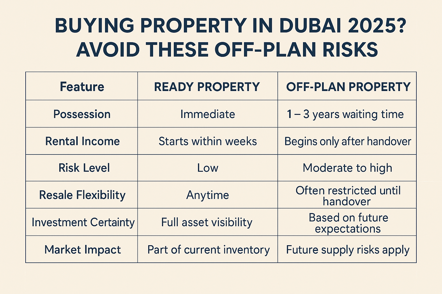 One of the key concerns is the risks of off-plan property Dubai continues to face. These include delays in construction, changes to project plans, uncertainty around final finishes, and dependency on developer timelines. As such, ready properties stand out as the safer and more transparent choice for serious investors.