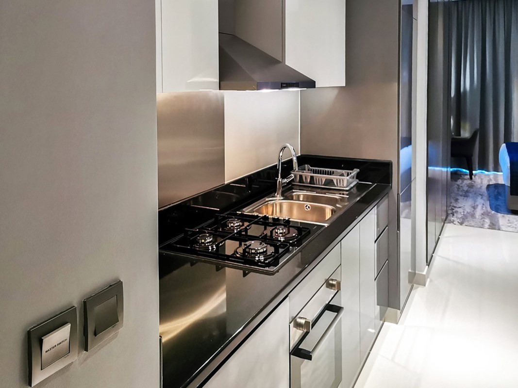 - Modern finishes with built-in kitchen appliances and wardrobes