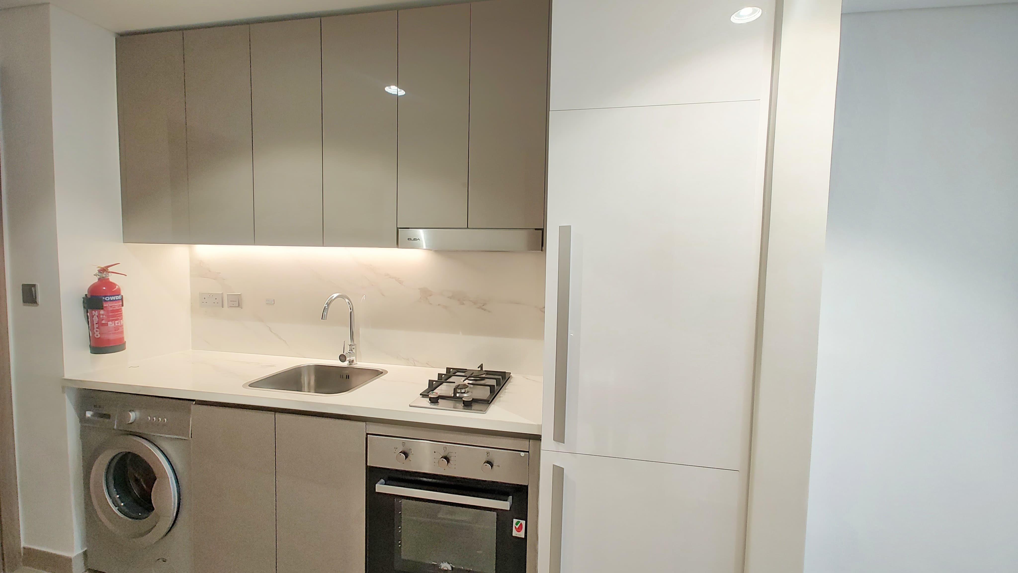- Modern built-in kitchen appliances and wardrobes